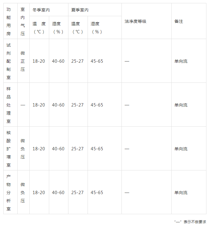 關于PCR實驗室的功能用房環境設計參數,在《疾病預防控制中心建筑技術規范》GB50881-2013中這樣要求: